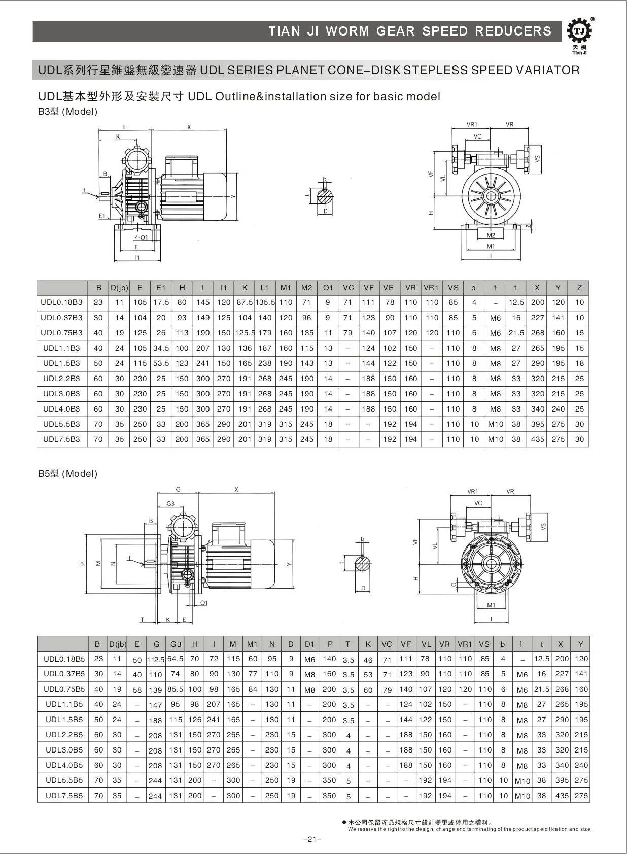 UDT摩擦无级变速器型号选型,UDT摩擦无级变速器尺寸参数